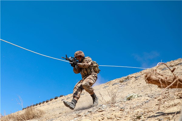 侦察兵绳索滑降打击来袭之“敌”。黄飞皓 摄