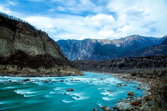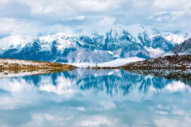 蓝天白云和皑皑雪山交相辉映
