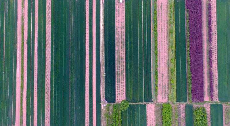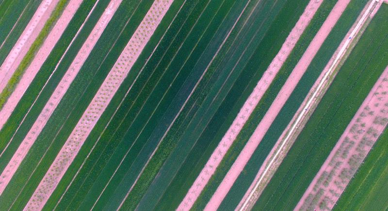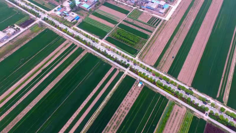 4月21日,航拍之下陕西省渭南经开区阳曲街道办事处农田里绿意盎然。