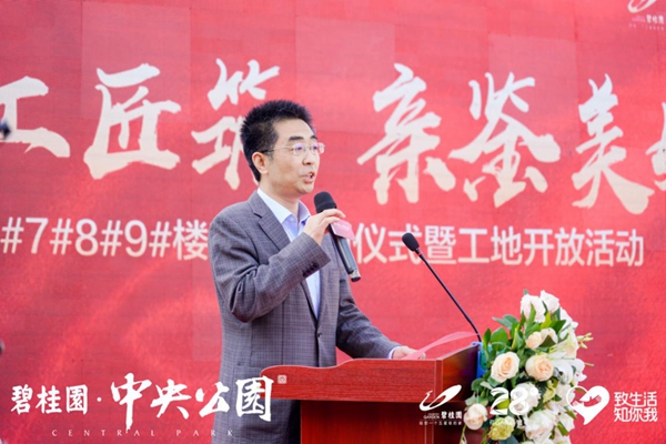 在启动仪式上兴平碧桂园中央公园项目总经理杨洪焦,对兴平各级政府领导以及广大业主长期以来给予项目建设的关心与支持表示由衷的感谢,并承诺碧桂园中央公园项目全体工作人员将上下一心,全心全意为业主服务,为业主创造更加完善的生活环境而不断努力。