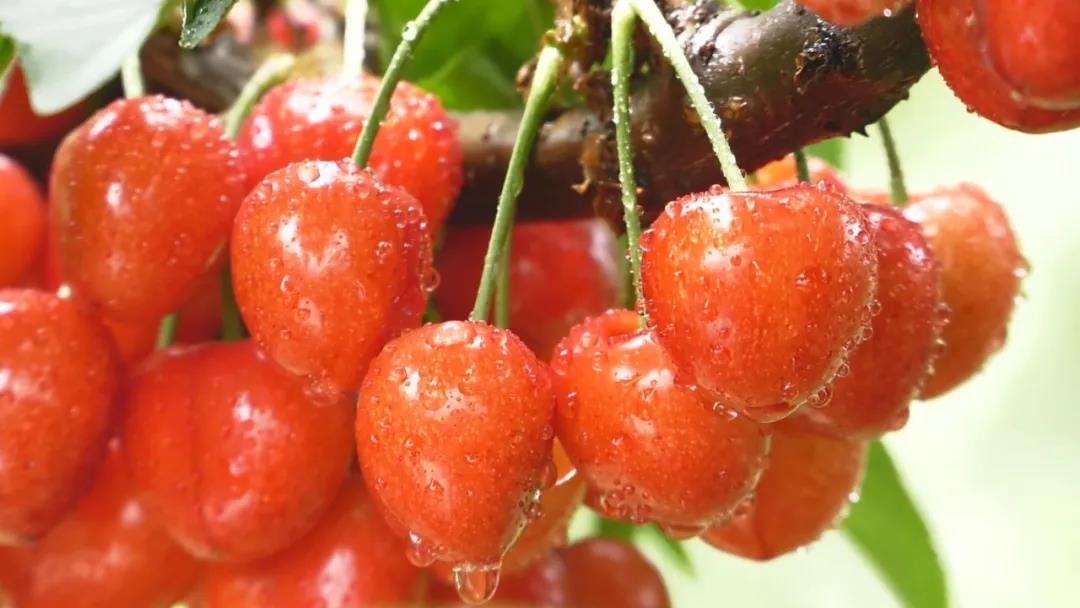我们村的樱桃,个头大、缝合线侧丰满、蜡质层厚、光泽鲜艳闪亮、酸甜可口、风味纯正、肉厚多汁,市场认可度高,线上线下齐发力,销路从来不用担心,现在已经预定完了。