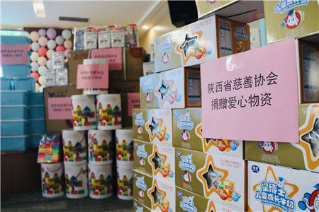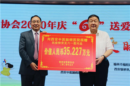 5月26日,在第70个“六一”国际儿童节来临之际,陕西省慈善协会联合爱心企业以“童心筑梦·爱暖明天”为主题,向全省两万名残障儿童、留守儿童和困难儿童送爱心联合慈善大行动启动仪式在西安中医脑病医院举行。省政府原常务副省长、省慈善协会终身名誉会长徐山林,省人大原副主任、省慈善协会荣誉会长刘维隆,省政协原副主席、省慈善协会名誉会长陆栋,省人大原副主任、省慈善协会会长吴前进,省慈善协会副会长张文亮、张凤英、孙忠信、李和、强翠屏,慈善专员、《善天下》杂志社、慈善书画研究会、陕慈发展与国际交流中心、西北大学慈善研究院、协会各部门负责人,陕西延长石油(集团)有限责任公司、榆林市榆阳区姿樾商贸有限公司、陕西红星美羚乳业股份有限公司、西安银桥乳业集团等爱心企业代表,西安中医脑病医院院长、医护人员以及媒体记者100多人参加活动。