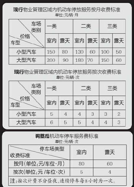 以一级停车位为例,对于小型汽车车主而言,室内停车位从150元/月降至80元/月,每个月减少70元,每年可少交840元;露天停车位从80元/月降至60元/月,每个月减少20元,每年可少交240元。