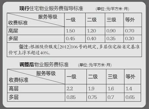 西安市发改委调研显示,调整后,物业费高层住宅在全国15个副省级城市排名第11位,多层住宅排名15名;停车收费在全国7个实行政府指导价副省级城市中排名第3位。整体价格水平在全国15个副省级城市中排名中等靠后。