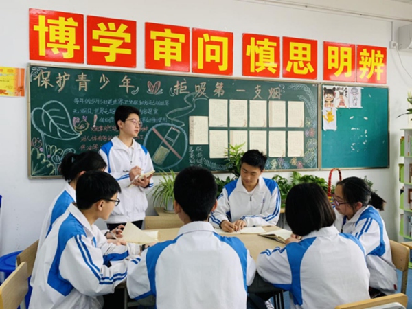 这样的大转变要从一次身份的变化说起。思源中学分校的老师倡导小组合作探究学习,鼓励学生做课堂的主人。周子涵刚上初中不久,老师就让他来当“老师”将自己的探究心得讲给其他学生听。“要想给别人讲清楚,肯定要自己掰碎揉碎了理解透彻。”周子涵说,为了上好那堂课,他准备了很久,在课堂上不仅充分地表达了自己的观点,还和同学之间彼此分享想法,学到很多。“除了课堂上知识的收获,老师还表扬了我的表达能力,说我口才好。”话语间,周子涵有些骄傲,从那以后,学校大大小小的课外活动他都会被老师推荐参加,还让他策划拍摄了学校“雷锋节”主题视频。