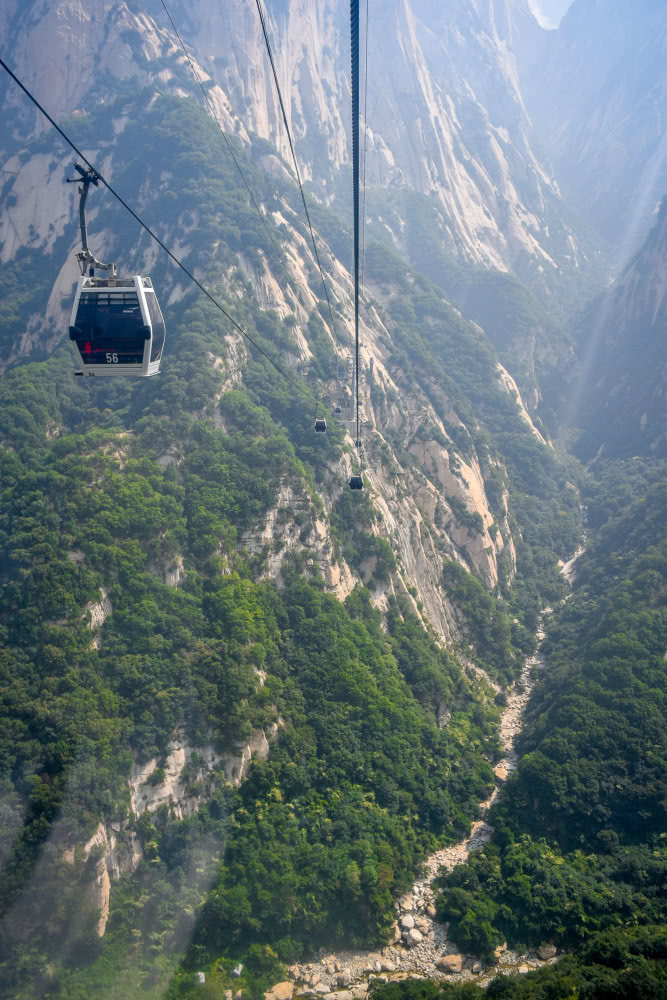 西峰索道也叫太华索道,去年才开始运营的,单程需要20分钟的时间,索道路线是“W”型的,不像传统的索道一直呈上升趋势,西峰索道有上升也有下降整个线路看起来像一个“W”。