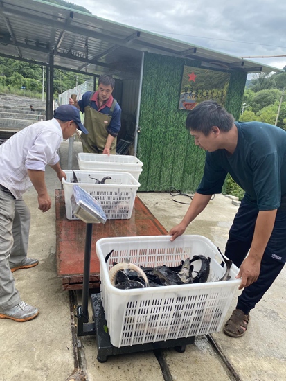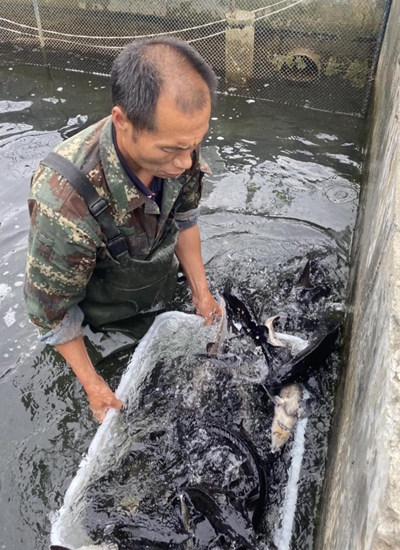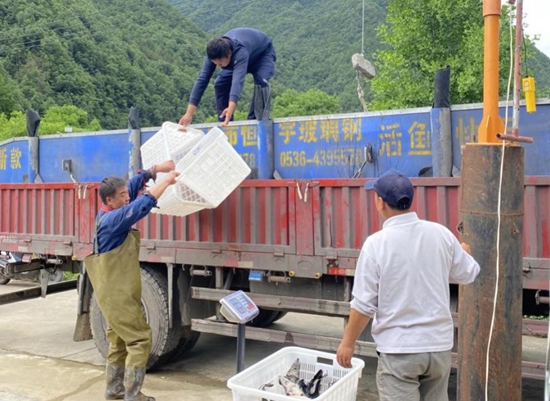 “装了有几千斤了?”隔着大老远就听到有人在问道。宝鸡市太白县太白河镇兴隆村鱼池养殖区门口一群人的捞鱼声,水声、群众的笑声混杂在一起。几个人一边擦汗,一边也不忘停下手中的工作。据了解,此次销售近6000斤鲟鱼到兰州、宁夏等地区,收入近12万元。