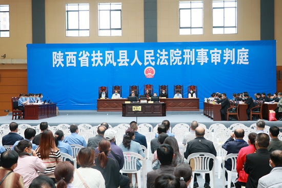 6月9日,扶风县人民法院在县体育馆公开审理东某某等32人涉嫌诈骗罪、敲诈勒索罪、寻衅滋事罪、赌博罪、开设赌场罪、窝藏罪一案。这是自开展扫黑除恶专项斗争以来,扶风县办理的首例恶势力犯罪集团案件。