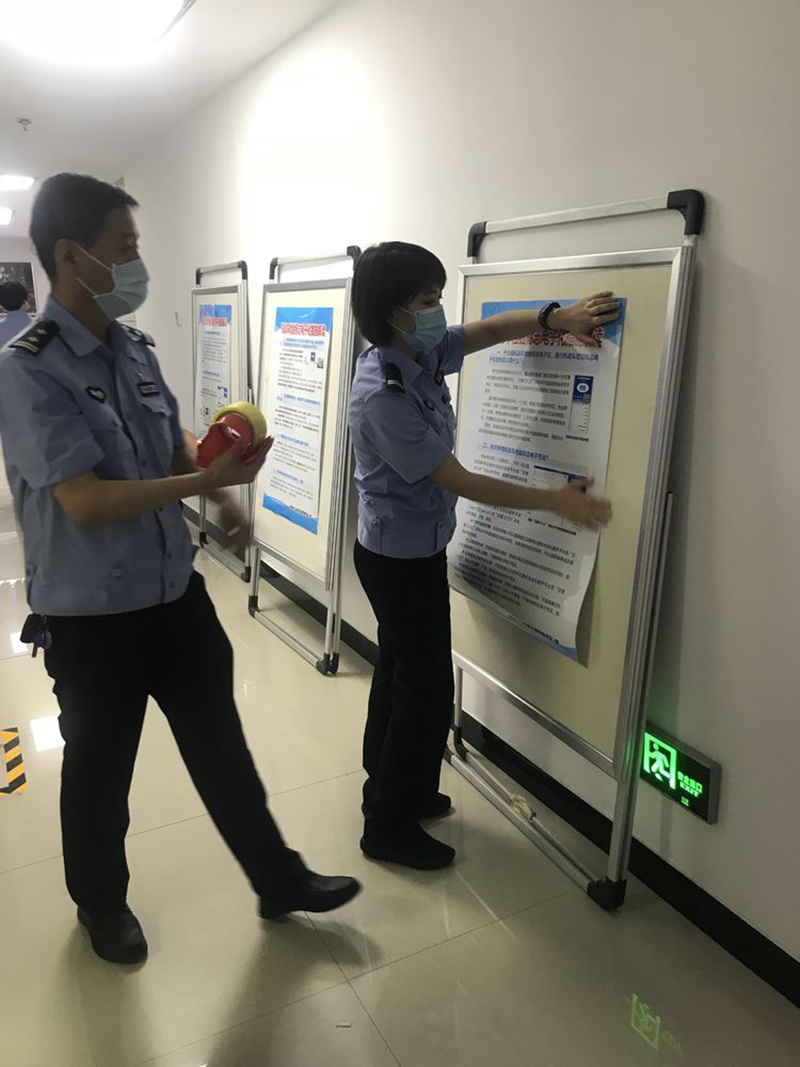 为落实公安部《关于做好机动车检验标志电子化推广应用工作的通知》文件精神,进一步深化公安交管“放管服”改革,提升“互联网+交管服务水平”,曲江大队法制中队迅速行动。西安交警曲江大队在6月19日下班后召开全员会议,迅速传达支队《6月20日全市车驾管窗口正常办理业务的通知》及“机动车检验标志电子化推进部署业务培训视频会”的内容,要求全员认真落实上级要求,周六不放假,开窗口继续为群众办理业务,同时,向群众宣传检验标志电子化的相关内容。会后,组织人员张贴宣传海报,为第二天宣传做好准备工作。