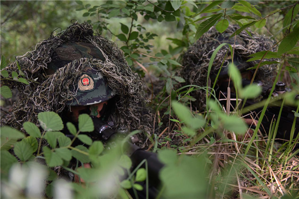 武警狙击手潜伏在丛林中锁定狙击“目标”