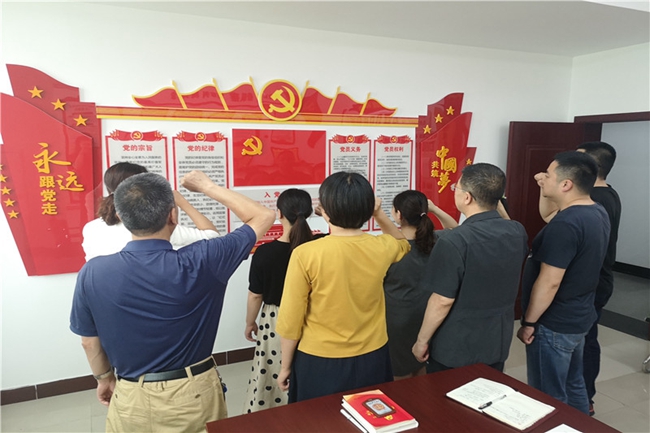 诵读后,党员干警结合自己的理解和感悟分享读书心得。最后,在支部书记焦兵丽的带领下,党员们面对党旗,举起右拳,庄严宣誓:“我志愿加入中国共产党,拥护党的纲领,遵守党的章程……”。字字铿锵、声声激昂,在誓词中重温了入党之初的理想信念,更坚定了初心使命。