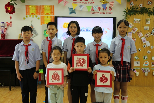疫情期间,我们的毕业生们来到幼儿园为孩子们上课,为我们的毕业季也增添了社会担当的新内容。作为准中学生‘牵手’准小学生,孩子们异常兴奋。”杨老师拿着手机不停地为孩子们拍照。