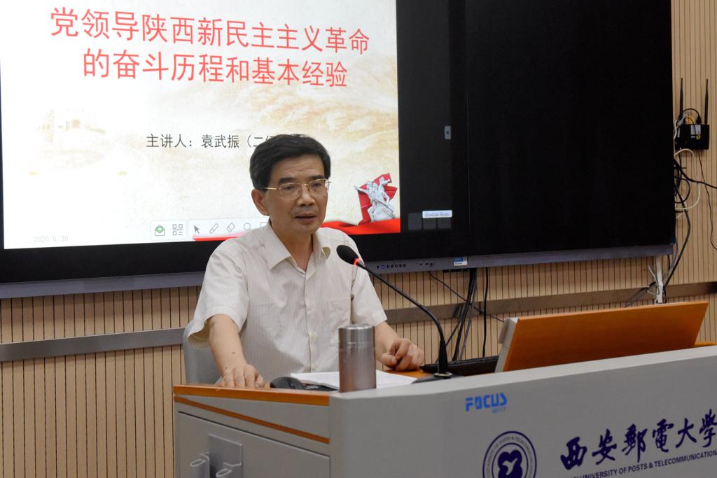 张新柱在主持讲话中指出,袁武振教授为师生上了一堂厚重的党史课,也是一堂生动的思想政治课。报告旁征博引、深入浅出地讲述了中国共产党近百年的奋斗历程和主要成就,全面系统的介绍了党领导陕西新民主主义革命的奋斗历程与宝贵经验,让师生深刻地认识到近百年的中共党史就是中国共产党人守初心、担使命的奋斗史,就是中国共产党人走过苦难、走向辉煌的奋进史,使师生更加坚定理想信念,明确时代担当,听党话、跟党走。他要求全校师生党员认真学习党史,从中汲取信仰的力量,校准前进的方向,坚持党对高校的全面领导,践行以人民为中心的发展思想,弘扬传承好延安精神,不忘初心、牢记使命,攻坚克难、追赶超越,为建设高水平邮电大学做出积极贡献。