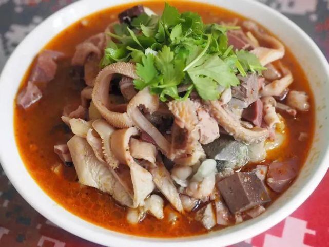 走在街上随处可见羊杂碎店铺子,据说小铺多是新的杂碎时时不断地往一个大锅里续,一锅汤用文火常熬不换,几年下来汤稠如油,色酽如酱,这叫吃“老汤杂碎”。杂碎酥烂绵软,醇美味存于汤,所以摊主不舍得多加汤。