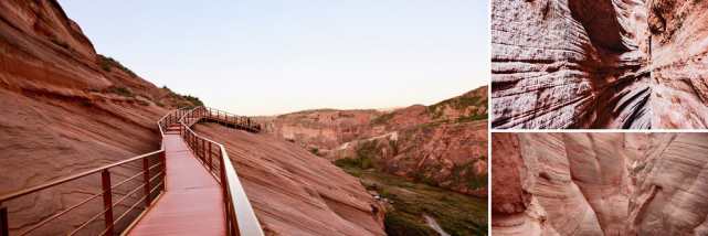 红色砂岩在风雨剥蚀下呈现出诡谲的线条与色彩,不同角度、时间都会呈现不同的景色。
