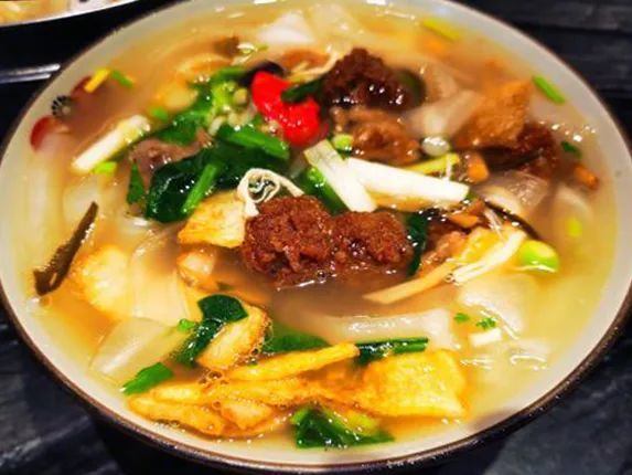 中羊肉是选自陕北肥嫩的山羊肉,肉质鲜美肥嫩,是羊肉中的极品,碗上铺着满满的一层。西安也有几家,不过肉的量和陕北那边差远了。据说面条都是冒牌货,正宗的都是揪面片。