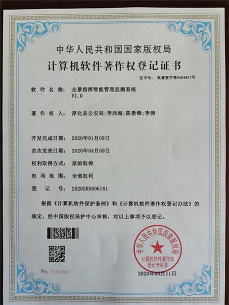 近期,陕西淳化县公安局历时9个月研发的全景指挥智能监测系统,经过国家版权局专家层层审核,荣获计算机软件著作权,填补了我国“沙盘雪亮作战指挥技术”的空白。据悉,近日该局将携此软件参加全国公安科技安防展览。