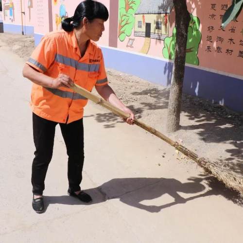 考虑到实际情况,镇上为其安排了公益性岗位,负责着村中一条500米长的南北主干道和东西两条街道清扫保洁,每天工作八小时,上午清扫,下午保洁。