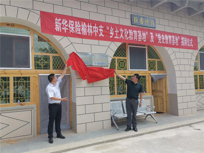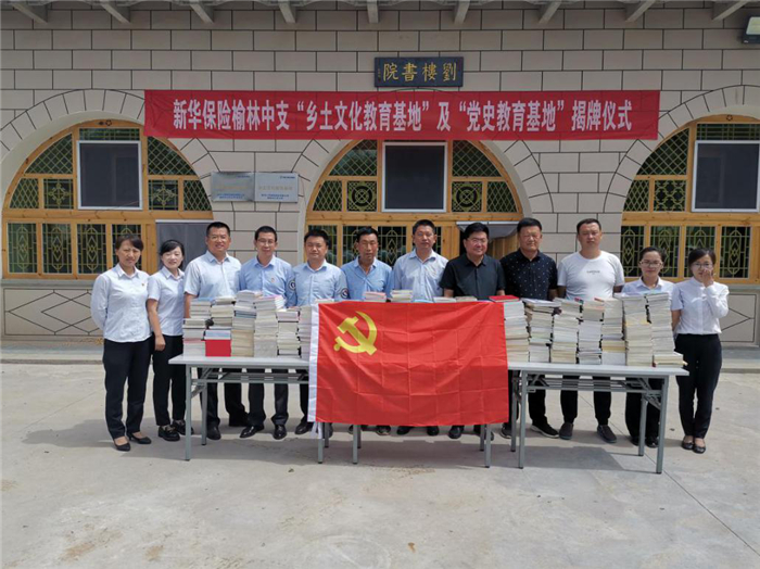 7月10日,新华保险榆林中支在榆林市横山区刘楼村举办“乡土文化教育基地”及“党史教育基地”两个基地挂牌仪式,并捐赠了一批电脑、打印机、办公桌、办公椅等办公用品及740余本书籍,关心留守儿童,推动乡村精神文明建设,丰富村民业余文化生活。