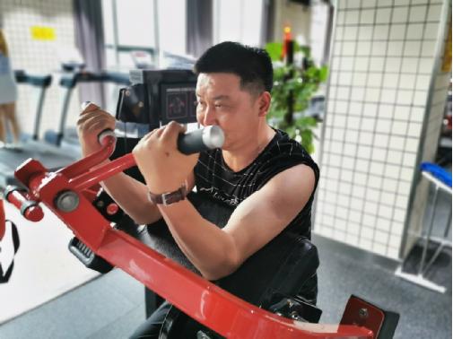 来到专业的健身房中,客户身穿公司统一定制的文化衫开始了他们的健康之旅。