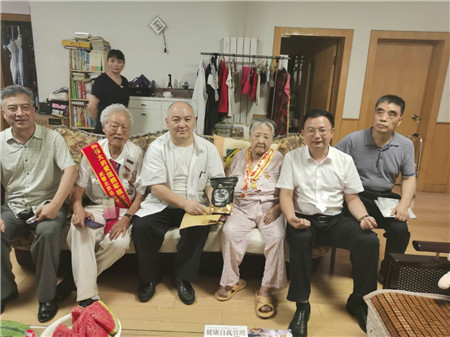 7月29日,陕西少华建筑集团公司董事长高海军委员,陕西青年创业促进中心副主任谭又铖,陕西省委原老干部局副局长王丹杰,中国著名法律界人士中国苹果大王高良佐,陕西省武警总队陕西省人民政府警卫连郝振飞士官,原西安市老干部局局长何局等人一同在炎热的夏天来到西安市小南门外红缨路一家属院内,看望97岁抗战老兵任桂莲,送去米面油,黑枸杞,西瓜,红枣等食品和慰问现金3000元,以及王丹杰局长亲笔山水画一幅,西安市老干部局何局慰问亲笔书法作品四副,各界爱心人士表达对抗战老兵的敬意和关爱之情。