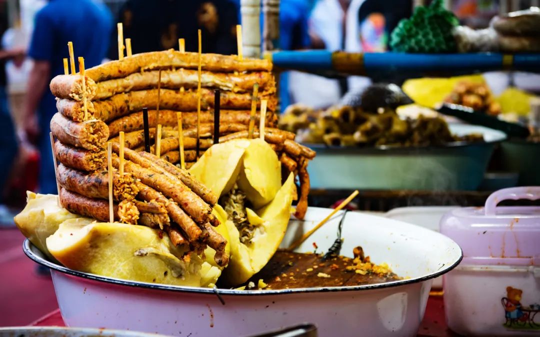 烤串的浓烟和焦香,弥漫在每一条小巷,阳光穿过篱落的树叶冲下来,光影迷离,恍惚若梦。