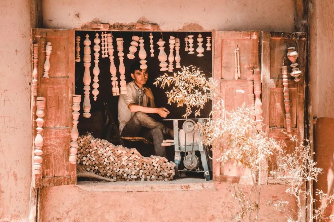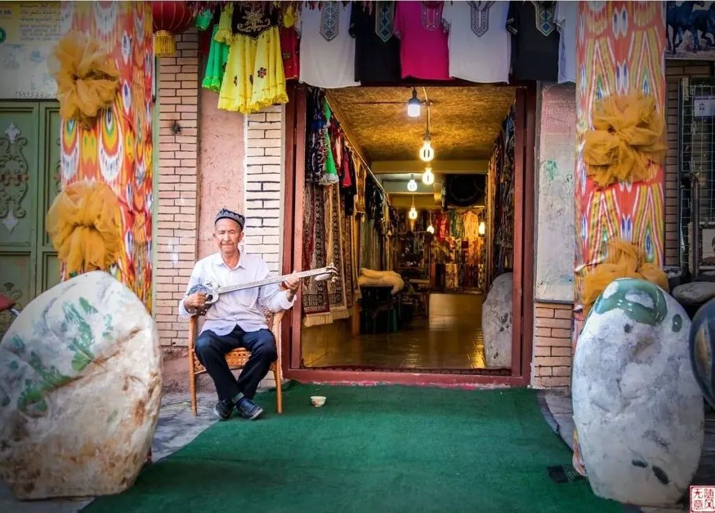 一路慢慢走过去,乐器店,馕饼铺,金银铺,杂货铺……每家每户的手艺人都在按着自己的节奏忙碌。