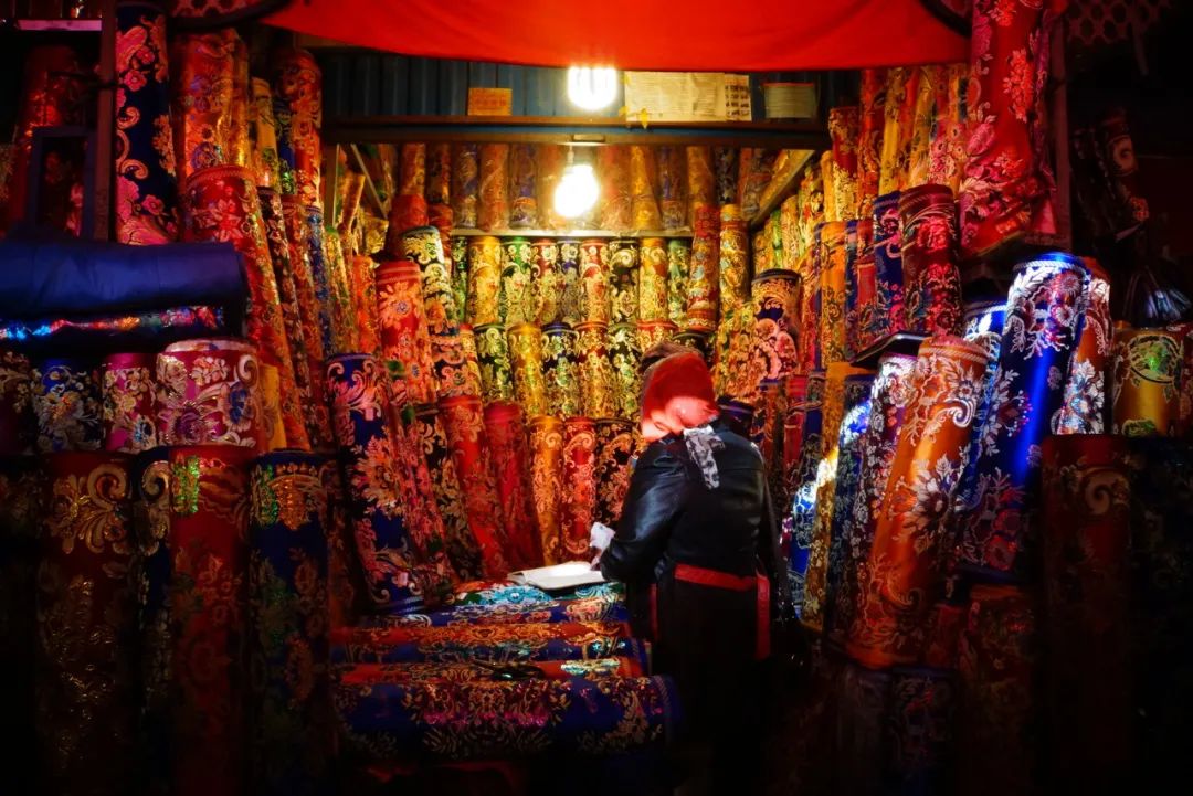 手工作坊连着商铺,一会是乒乒嘭嘭,一会是叮叮当当,偶尔又有美妙的民族音乐响起。