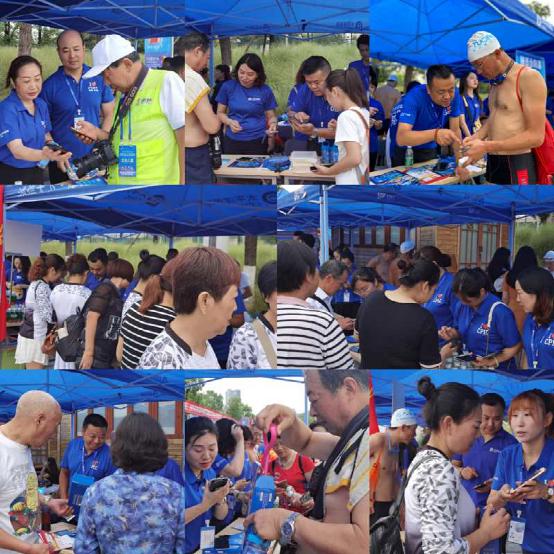 中国太保的刀旗迎风摇曳、中国太保的空飘格外醒目、中国太保的蓝亭贝联珠贯、中国太保的方队整装待发。上午 7:30 分,中国太保寿险汉中中心支公司内外勤 56 位工作人员准时集聚活动现场,为来往的观众带去最贴心的服务保障。阳和启蛰、一期一会。赛事现场设立专业、醒目、大气的理赔咨询台,一顶顶蓝亭连成线,热情的中国太保人身披蓝色战衣,高举旗帜,成为赛事现场一道靓丽的风景线;假令风歇时下来,于汉水处滔英雄。在激烈声扬的赛点时刻,中国太保伙伴热情问津,对前来咨询服务的参赛选手和现场群众,提供物资和保障。同时为广大群众送去蒲扇、开通绿疾、赠送嗨卡、迎递饮水、暖赠爱心等专项服务。