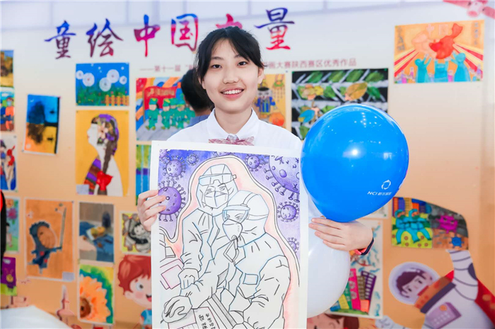 活动最后,孩子们手持画笔,通过内容丰富、创意十足的百米长卷礼赞新时代,共绘中国梦,以稚嫩的笔触展现疫情下众志成城、大爱无疆的中国力量,童心童绘伟大的祖国,强大的中国力量,平凡又伟大的逆行者。