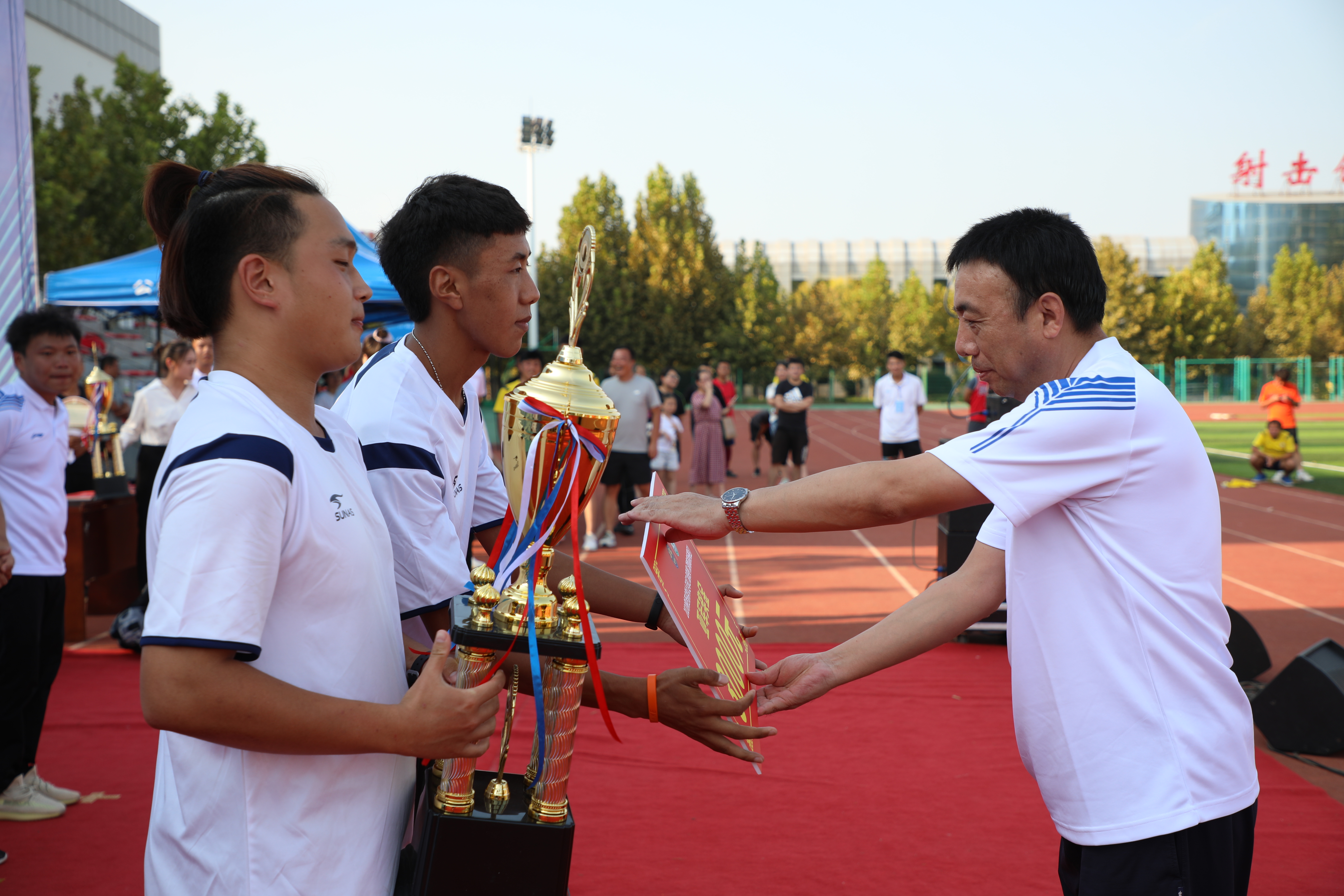 8月29日下午,2020年陕西省群众足球乙级联赛渭南高新赛区比赛闭幕。高新区管委会副主任姜通参加闭幕式。