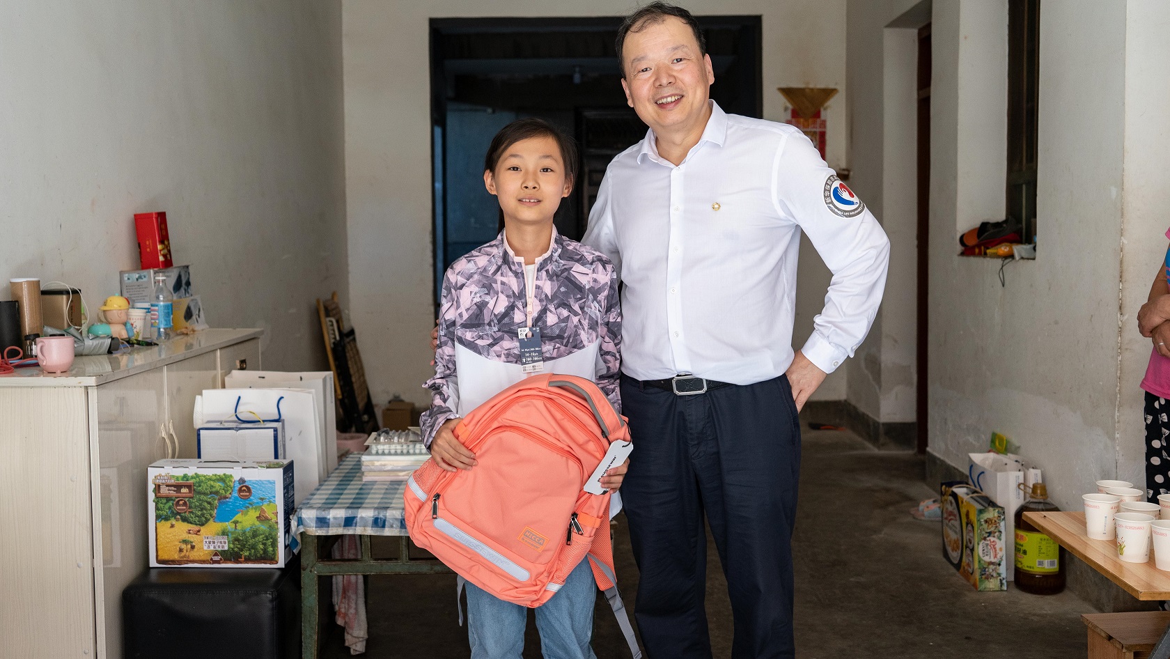 在临潼区骊山办胡王村风王沟,西安中支总经理殷海峰及志愿者代表走进贫困儿童家中,与孩子亲切交流,详细了解贫困家庭生活状况及儿童身体、教育状况。寄语孩子以乐观、积极的心态去面对生活、树立远大理想并用功读书,同时将准备好的文具用品、新衣服送到儿童手上。
