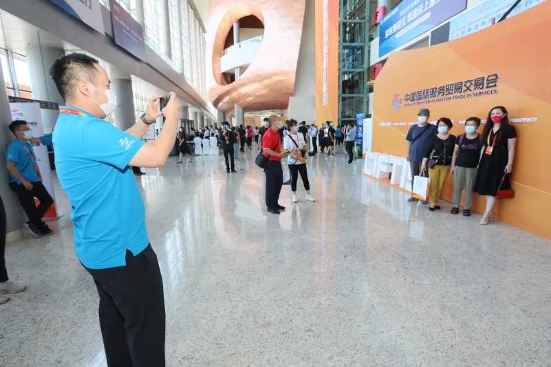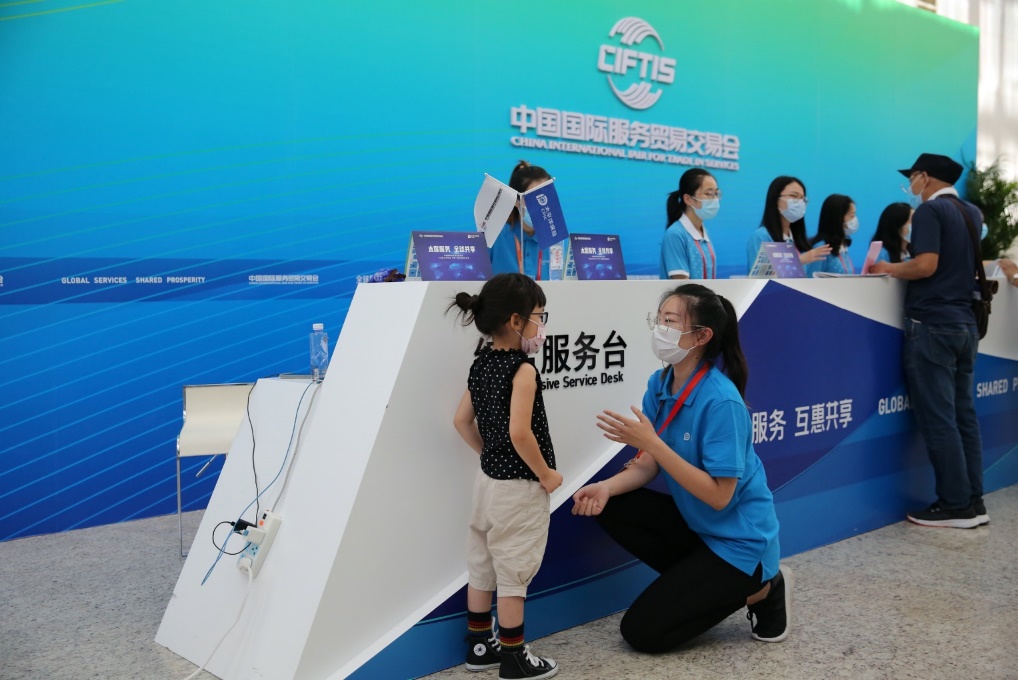 “阿姨,这个是服务贸易交易会,参展的是服务商。”志愿者于曦雯说。