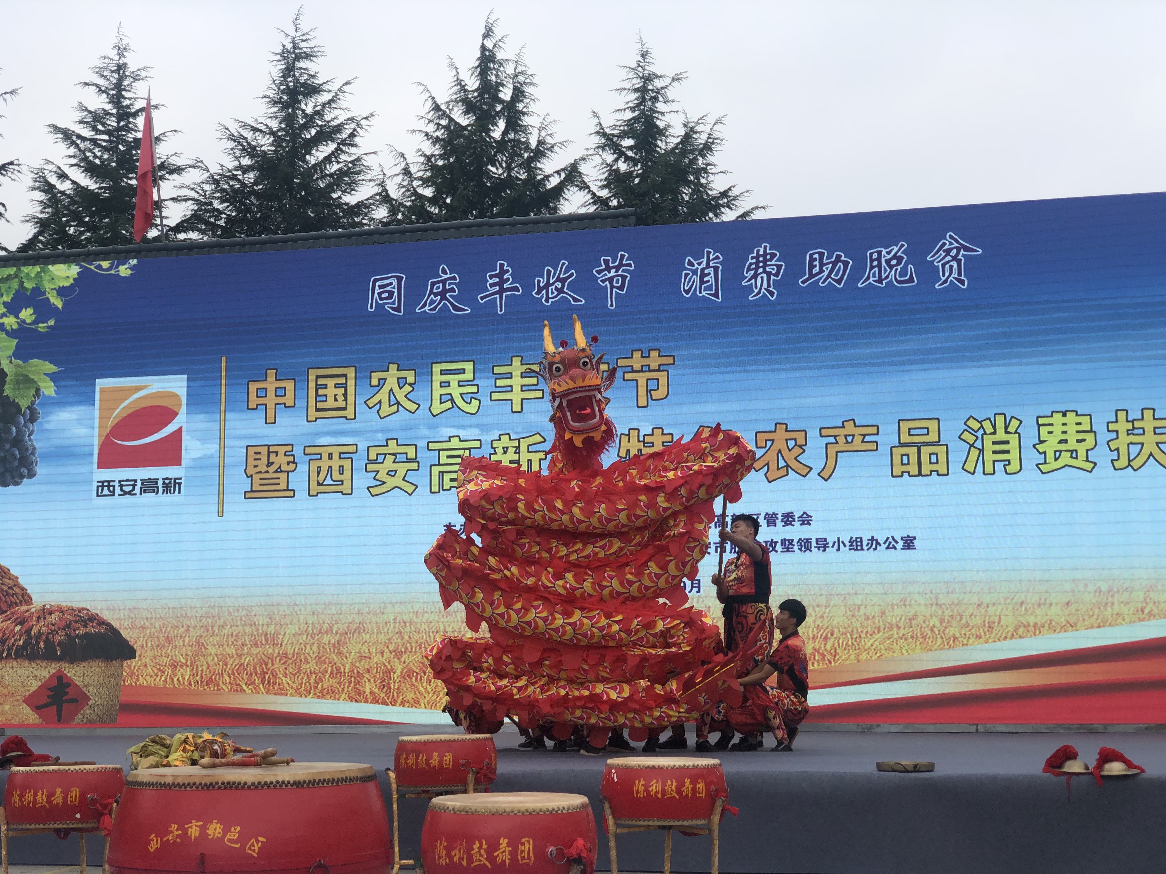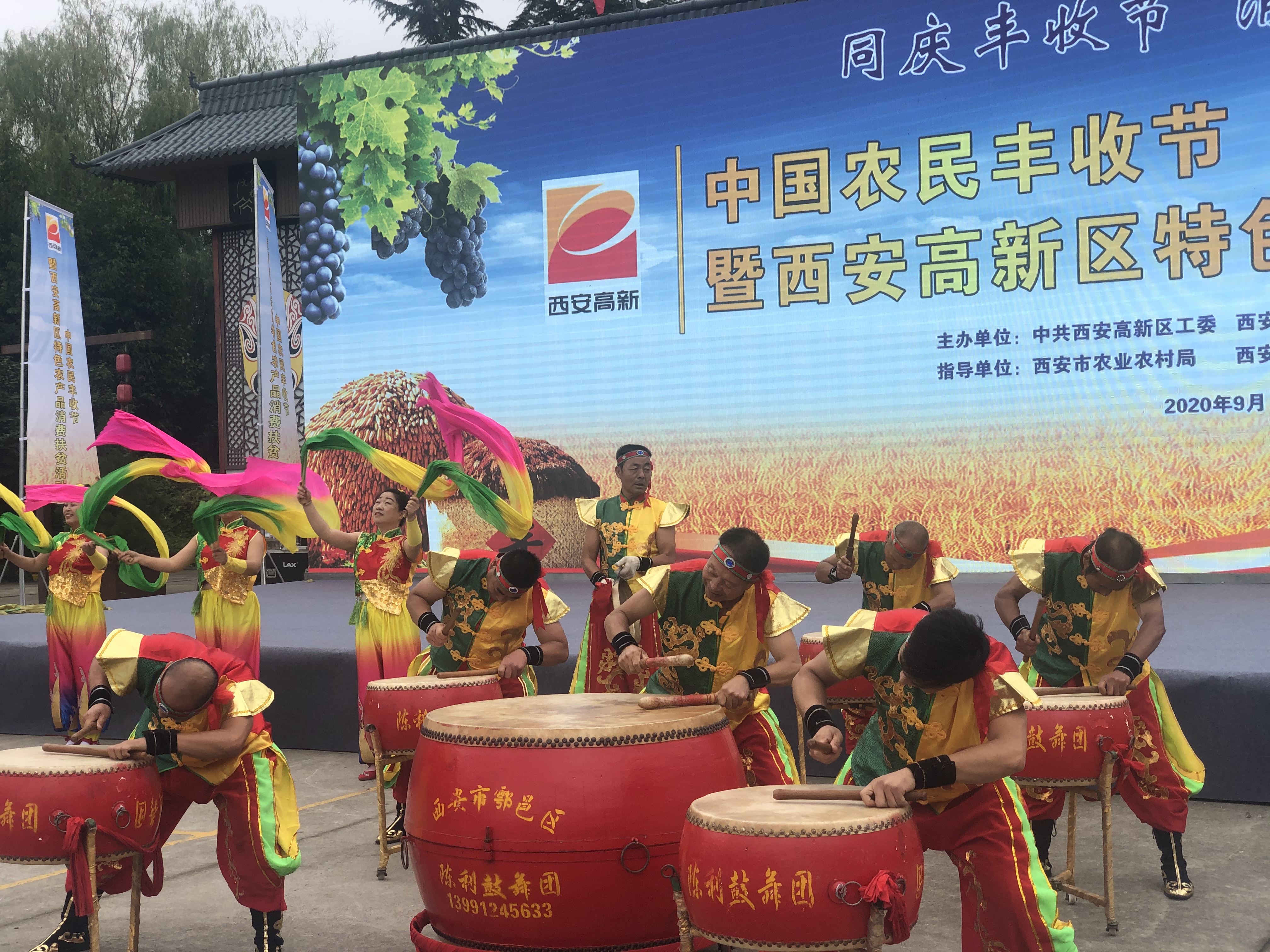 金秋时节,秦岭北麓蔬果飘香。9月23日,庆祝中国农民丰收节暨西安高新区特色农产品消费扶贫活动在草堂街道李家岩村举行,数百名群众共聚一堂载歌载舞庆祝丰收,活动现场锣鼓喧天,处处洋溢着节日的喜悦。