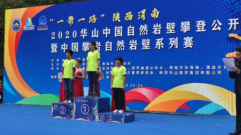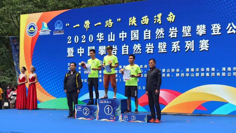 9月24日下午,经过两天的激烈角逐,“一带一路”陕西渭南2020华山中国自然岩壁攀登公开赛暨中国攀岩自然岩壁系列赛在华山景区落下帷幕。