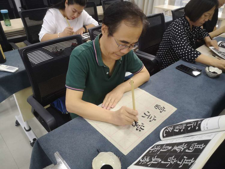 前8次授课中,高新区书法家协会陈龙主席结合自己学书体会提纲挈领地为学员们介绍了书法艺术的悠久历史和发展历程;高新区书法家协会副主席王拥军围绕唐代书法家颜真卿其人其艺,全面系统讲解了“颜楷”怎么学、学什么的学书思路和方法;高新区书法家协会副秘书长任志登、王自力两位老师,结合自己几年来教学经验和参展经历,从执笔、基本坐姿入手和偏旁部首等基础知识手把手为学员们耐心细致讲解。整个课程的安排,经过书协认真研究、精心设计,让学员们在轻松愉快的氛围中既感受到书法艺术魅力又了解了书法知识,锤炼了书写技能。