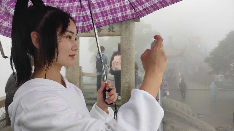 当天,景区下起小雨,华山云雾升腾,让游客切身感受到“不识华山真面目,只缘身在细雨中”的诗意美景。“感觉来到华山,云里雾里的,像仙境一样,我很满意这次旅行”,河南籍游客告诉记者。