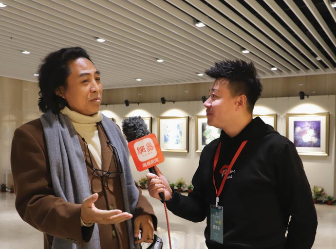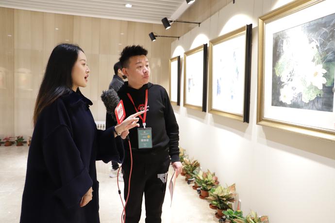 画展现场曾琳轩导师、陕西国画人物画院执行院长王志平接受记者采访
