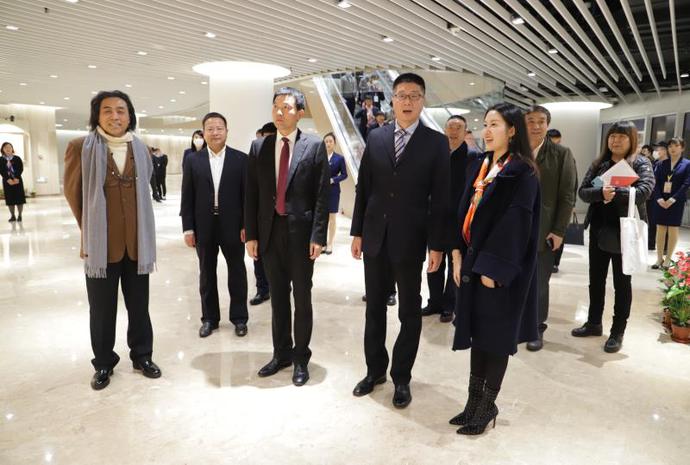 陕西省委常委、宣传部长牛一兵(右二)、副省长、宝鸡市委书记徐启方(右三)观看画展