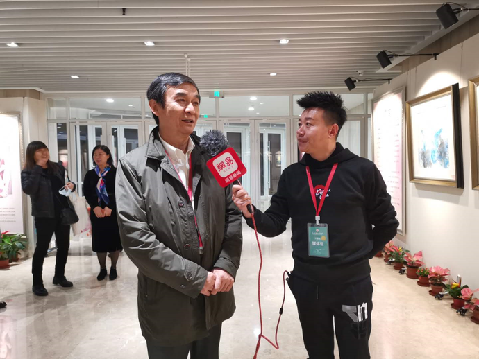 陕西省美术家协会主席郭线庐观看画展并接受记者采访