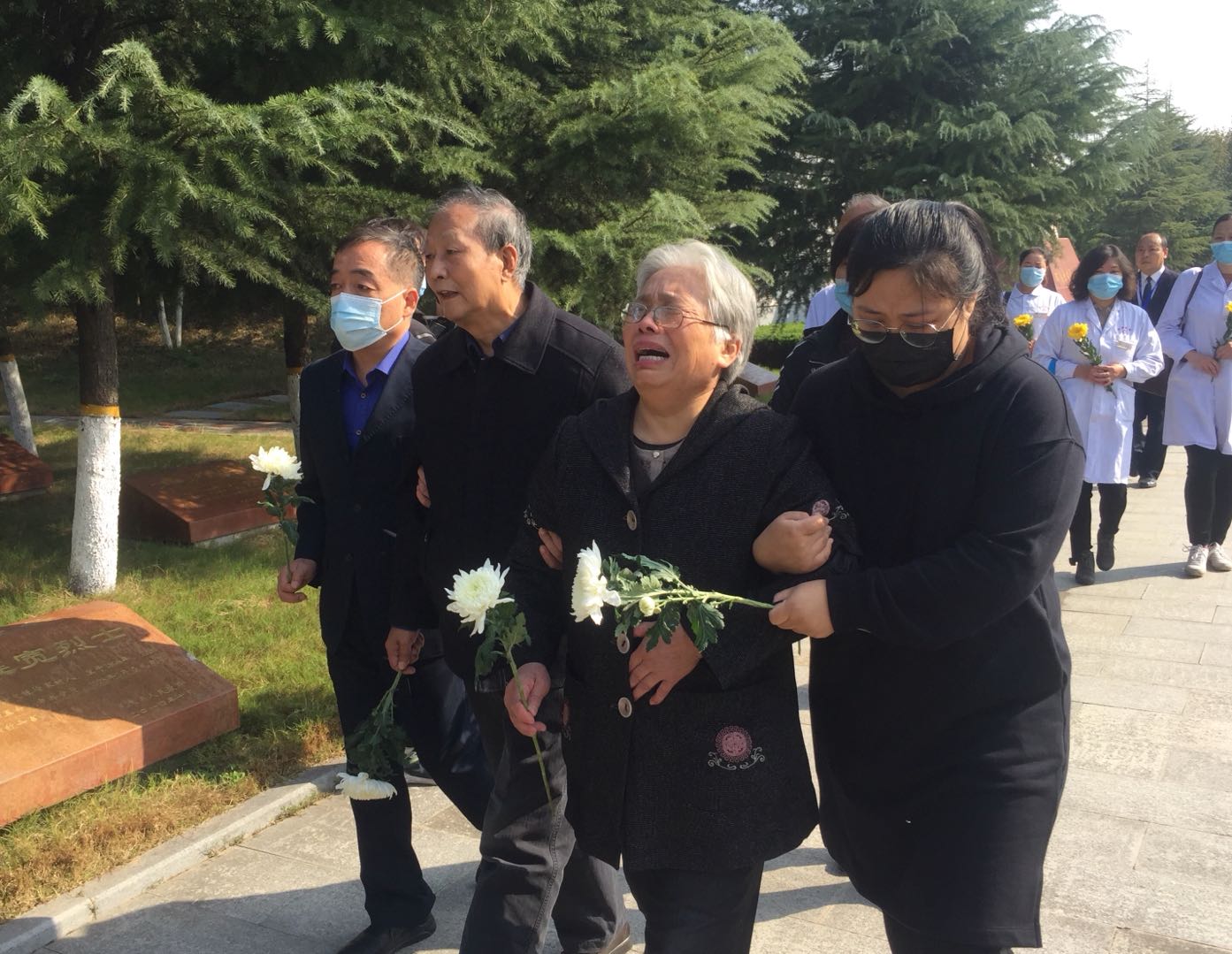 19日上午的咸阳市革命烈士陵园庄严肃穆。由北京市消防救援总队、北京市大兴区消防救援支队、咸阳市消防救援支队、秦都区消防救援大队消防指战员代表,咸阳市退役军人事务局领导,秦都区委、人大、政府、政协领导,及王建烈士家属亲友及群众共200余人组成的送别队伍,大家手捧菊花,脱帽肃立,神情哀伤,向王建烈士默哀、鞠躬。在介绍了王建烈士生平事迹及宣读了《革命烈士批准文件》后,伴随着沉重的《安息号》曲乐,送别队伍一起护送王建烈士安葬咸阳市革命烈士陵园。