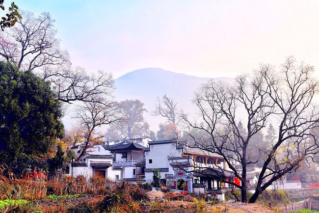 欣赏塔川秋色时,最适宜的时候是在早晨。塔川由于地处山谷,清晨时分,雾气笼罩,稍远处望去,缭绕轻薄的云雾,仿佛一缕绵绵的白纱缠绕在粉墙黛瓦的古建筑与树木之间,薄薄的雾气笼罩在树上,似有似无,农家的小屋若隐若现,红枫丛中忽露出飞檐翘角,粉墙黛瓦在金黄叶子的掩映下如同中国山水画般诗情画意。