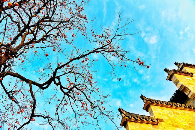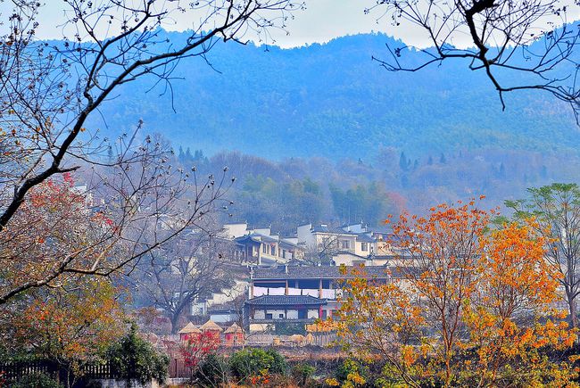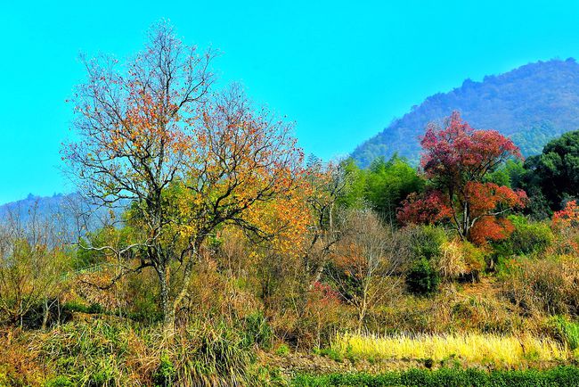 塔川的亮点树种是乌桕树,它的叶子比枫树红的要早,但叶子并不是一下子全红起来,从霜降节气过后,开启了渐变的过程。村中树木树龄不同导致叶子变色时间不同,树木地理位置不同导致阳光照射时间不同,同一棵树的向阳面和背阴面阳光照射时间也有很大差异,所以树与树之间,同一棵树的不同叶子之间,由绿变黄或由绿变红,以至于最后落叶的时间都不尽相同。而这前后的20天左右时间,不同色彩的树林,给小村带来了无数的惊艳。