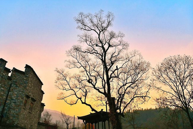 独特的自然环境,不同的树种类别,使得村口这片古木形态各异,有的如利剑直插去霄;有的如花冠,铺遮大地;有的又如千手巨佛,无数巨臂伸向天空,仿佛要捋摘天空中的星云。