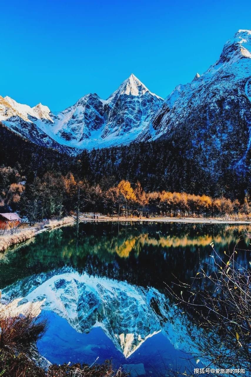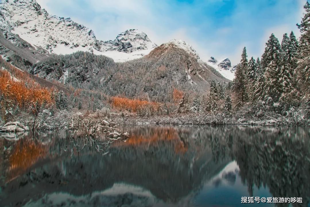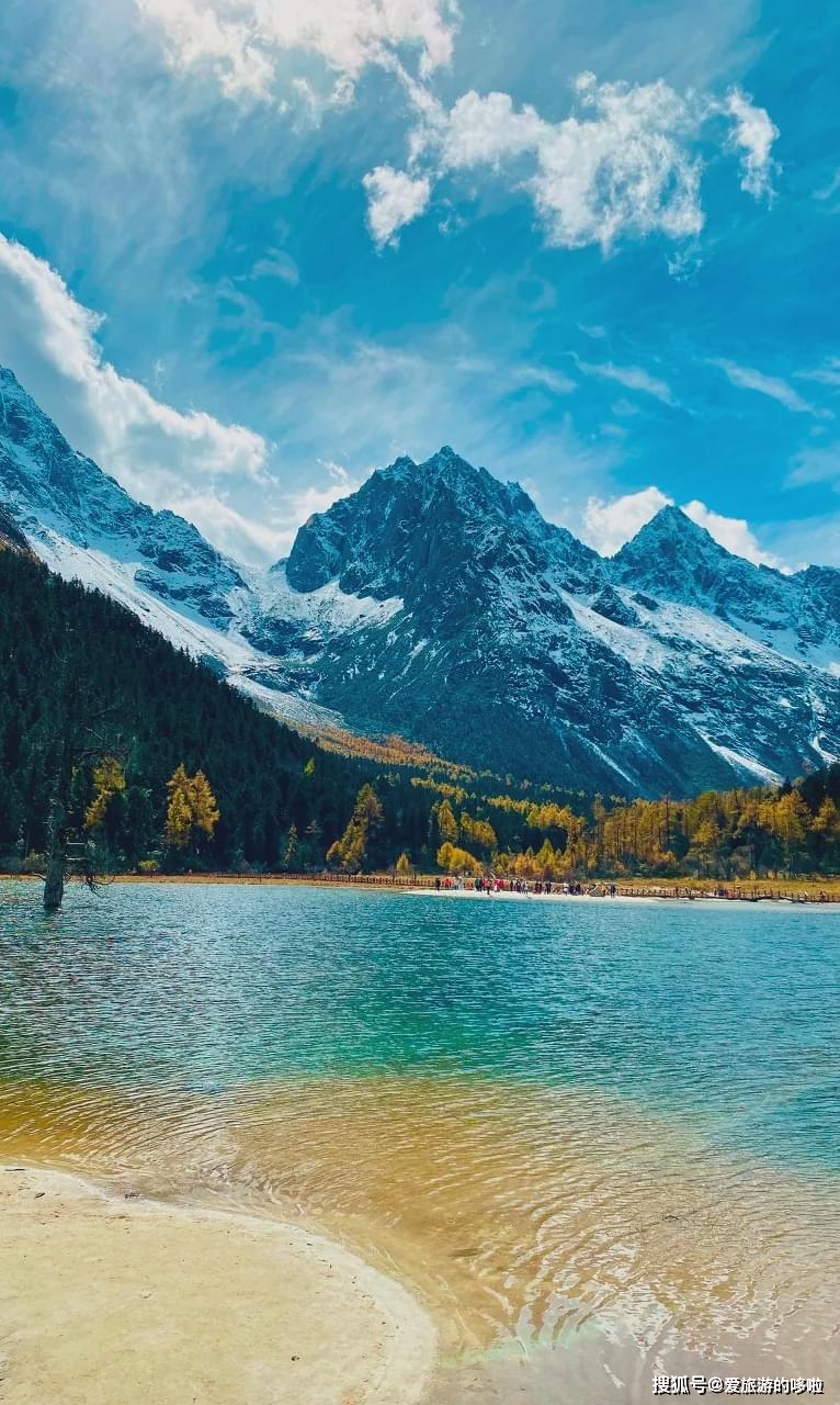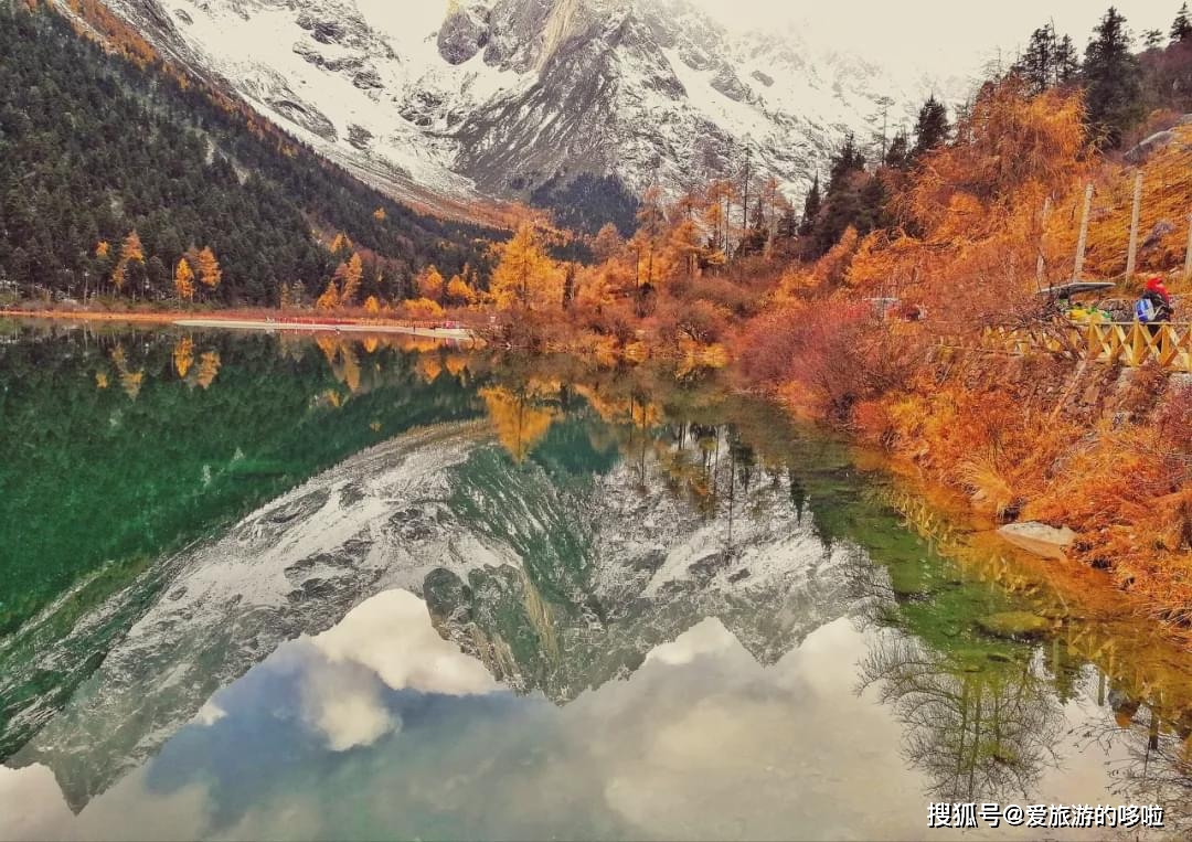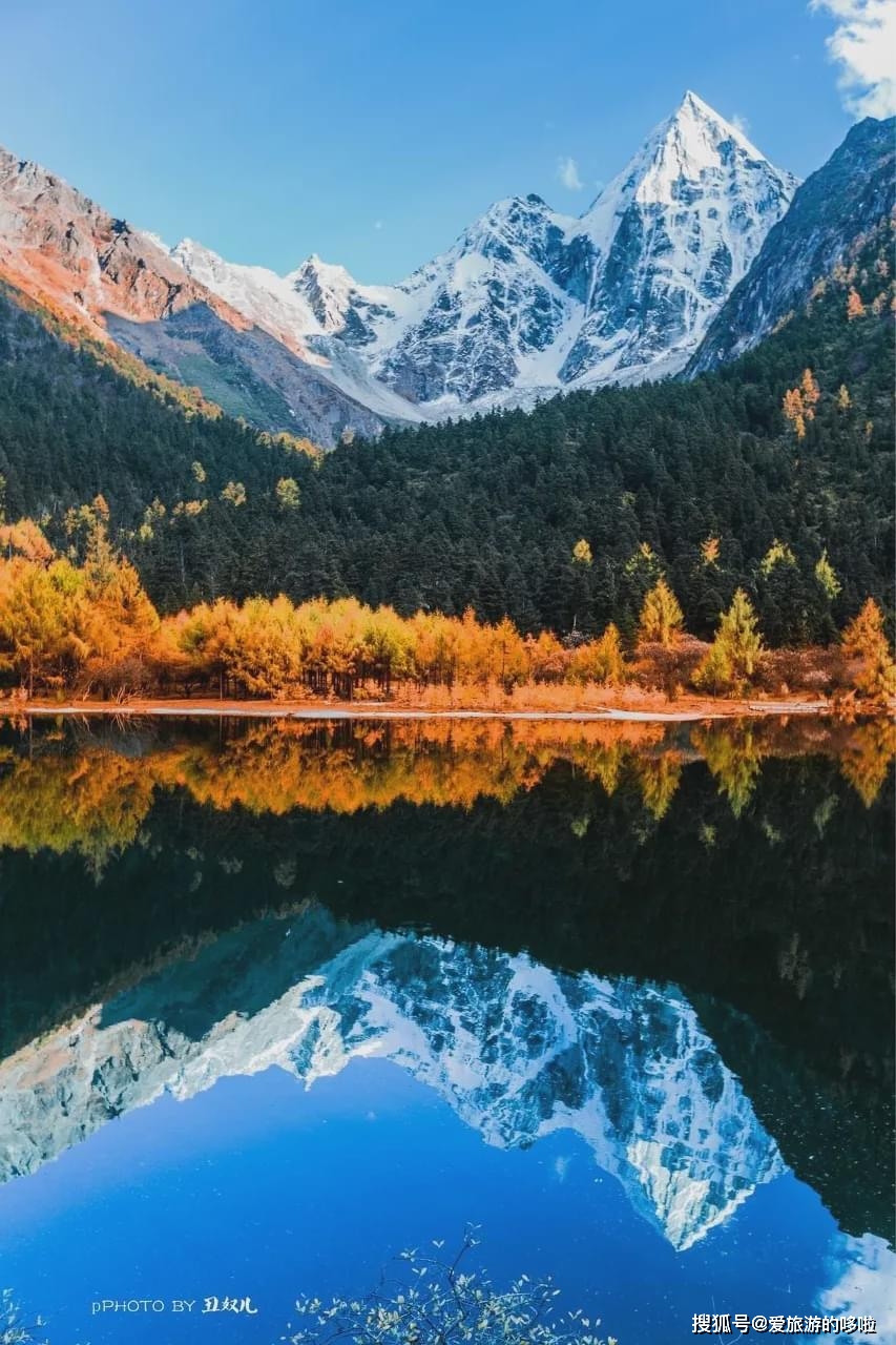 金秋十分,波光粼粼的湖泊倒映着雪山彩林,溪流瀑布就在不远处,一幅多姿多彩的自然画卷十分撩人。