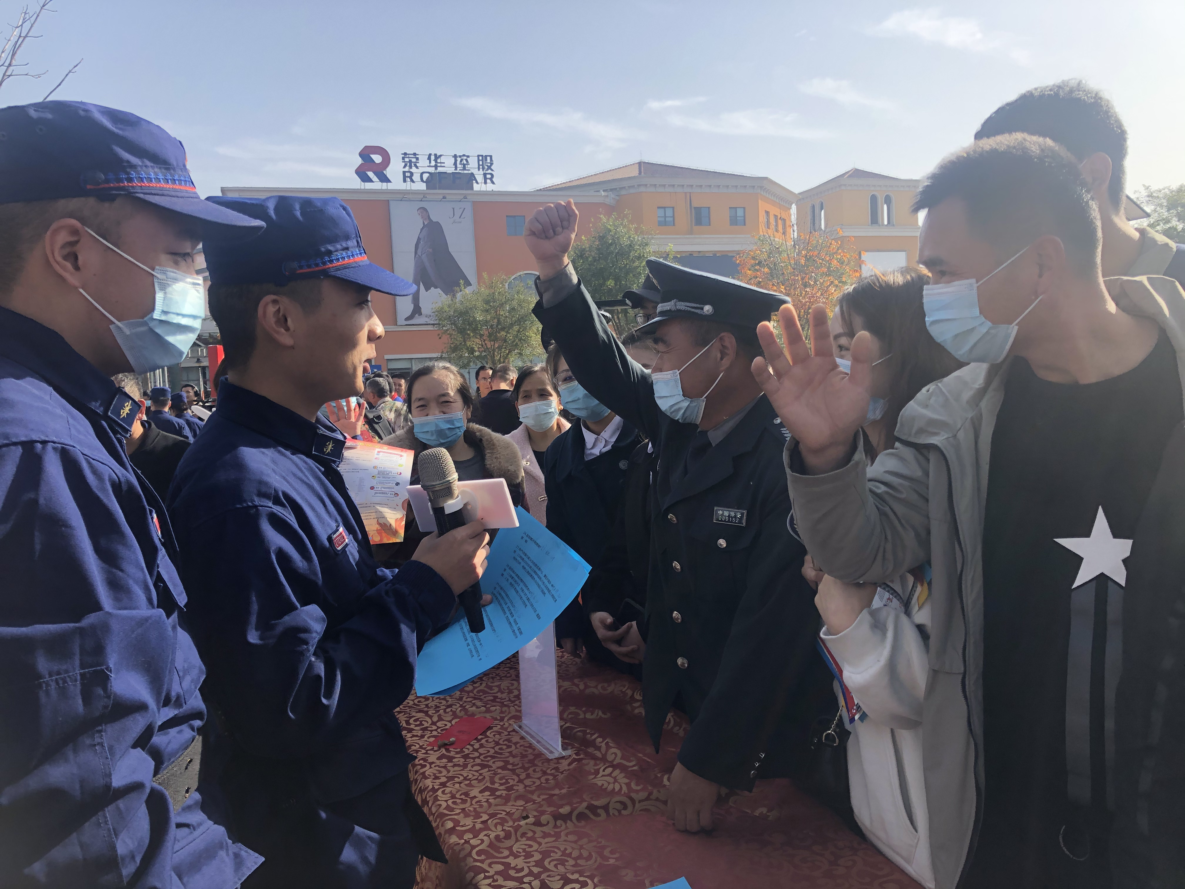 为了丰富宣传教育形式,秦汉新城消防救援大队还在活动现场设置了消防器材展、避火服展示、消防主题拍照打卡框、消防知识问答红包墙等,很多到场居民都积极地参与了互动趣味回答。在消防器材展示区,谈及看了消防演练的感受,来自天地瑞石油公司的职工孙江平告诉记者,这次消防演练看得很带劲,“我在油库工作,负责消防安全。刚才看到演练环节时候消防员用到的高喷车、登高车,感觉这一年来消防力量建设得特别好,让我觉得工作生活有他们保驾护航,觉得很有安全感。这次在现场的很多消防器材设备都是第一见,也是一种学习,对我的工作有很大的参考作用。”