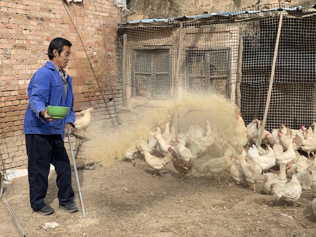 杨芝平喂鸡