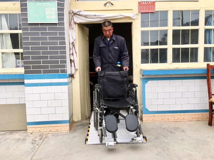徐艳芳,2009年因患脑溢血导致半身不遂;张志军,2013年因患食道癌导致语言障碍。这是一户夫妻双残家庭。平日里,张志军既要下地干活维持生计,还得照顾病床上的妻子,每天地里家里跑上几个来回,特别辛苦。子长市残联给徐艳芳配备了坐便椅、轮椅,又实施了路面坡化、L型灶台、洗菜池等十多项无障碍改造,大大方便了他们的日常生活和简单出行。