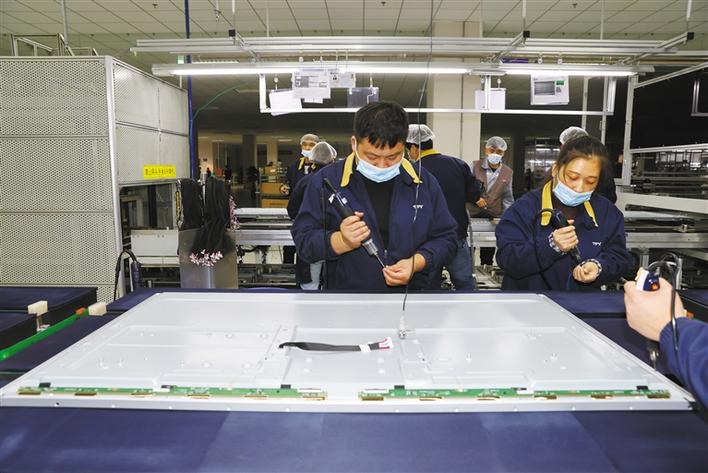 11月11日,咸阳彩虹光电新型电子显示产业集群项目生产车间,工人在装配产品。记者 张辰摄