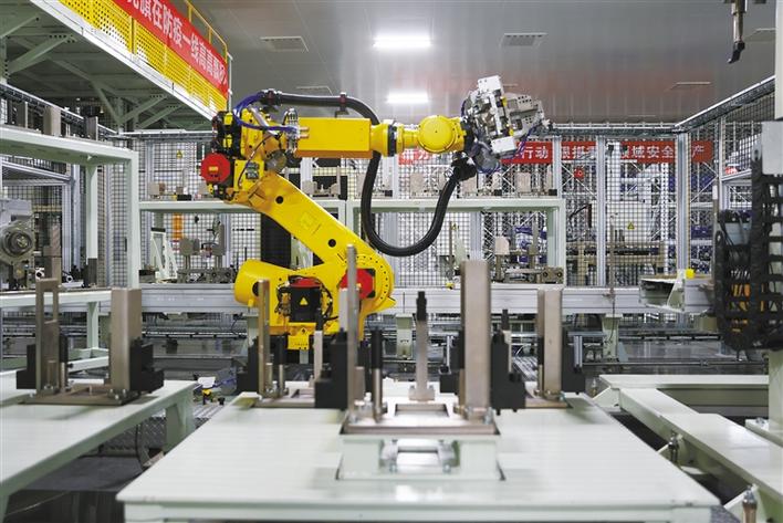 陕西法士特智能制动系统有限责任公司拥有四座联合厂房及其配套辅助设施。图为智能机器人正在进行作业。记者 张辰摄